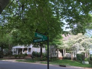 The Hobbs Hill Neighborhood is comprised of 24 homes located on Watson Street, Hobbs Street and Julia Circle between Beaty Street to the West and the historical Norfolk-Southern “O-Line” railroad and Main Street to East, adjoining the Town of Davidson’s legacy Beaty Park protected by a conservation easement with Davidson Lands Conservancy and nearby historic Davidson College.